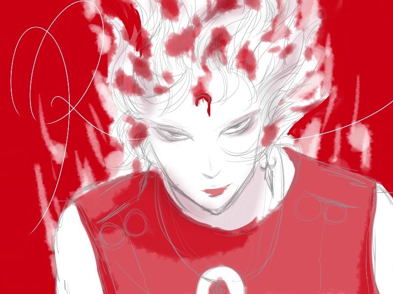 舞台用メイクのピーンとしたまゆげと、彼の細い目がマッチしてて、天野義孝さんの絵っぽかったので。